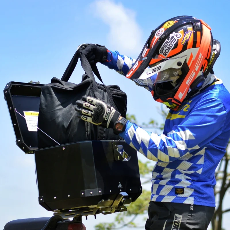The Auto Engina Inner Bag for Top Box is designed to enhance storage organization, luggage protection, and touring convenience for motorcycle riders who demand more from their top box setup. Whether you're packing for a weekend ride, a long-distance tour, or a daily commute, this 42-litre inner bag ensures your valuables are protected, organized, and effortlessly accessible — thanks to all-side foam padding, a dedicated padded laptop sleeve, multiple compartments, and a water-resistant 900D PU-coated cord construction built to endure the demands of the open road.