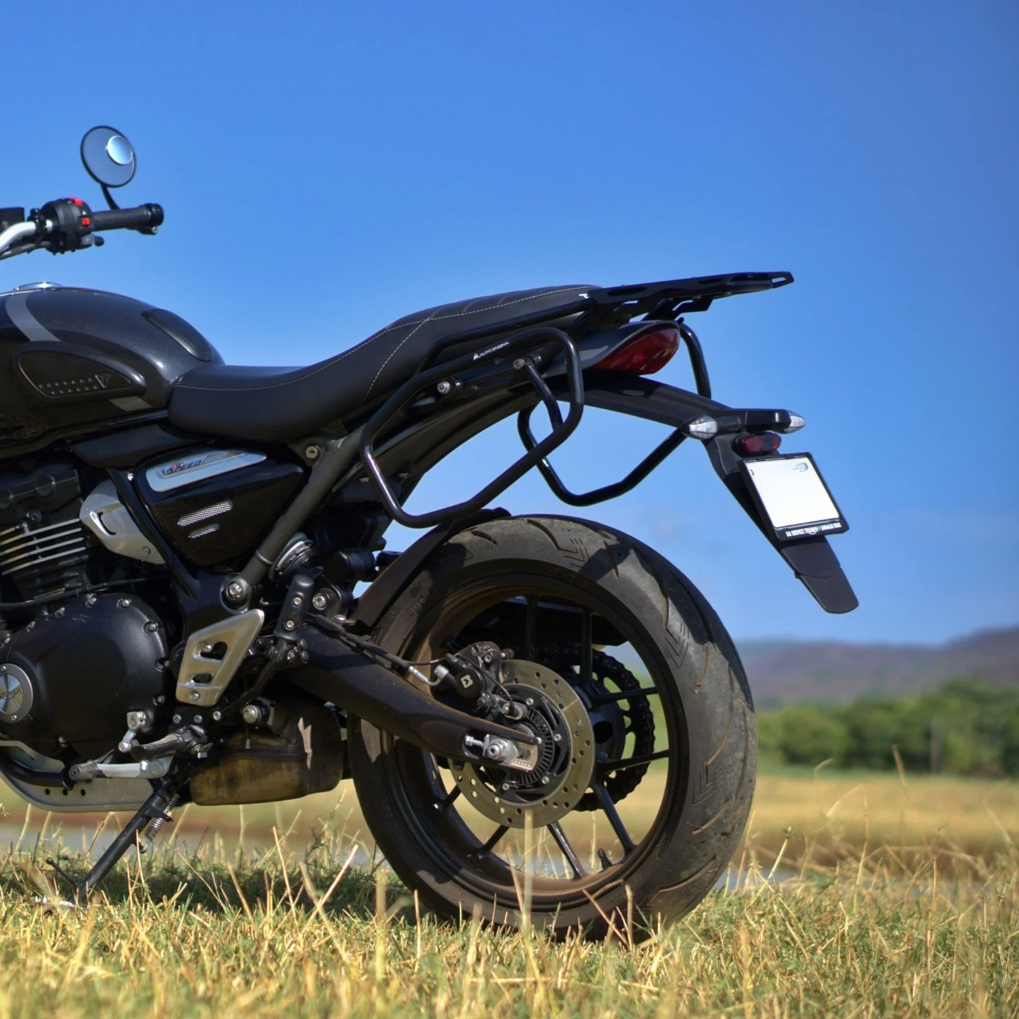 The Auto Engina Top Rack is specifically engineered for the Triumph Scrambler 400X chassis. For compatibility with other Triumph models, please contact Auto Engina before purchasing.