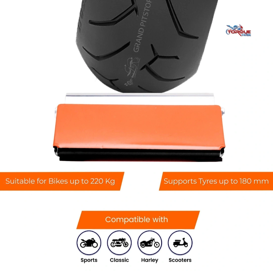 The Grand PitStop Ramp Roller is a lightweight, portable paddock stand replacement designed to make motorcycle maintenance simple and hassle-free. Instead of lifting your bike, you simply roll the wheel onto the Roller, allowing smooth rotation for quick chain cleaning, lubrication, and tyre inspection.